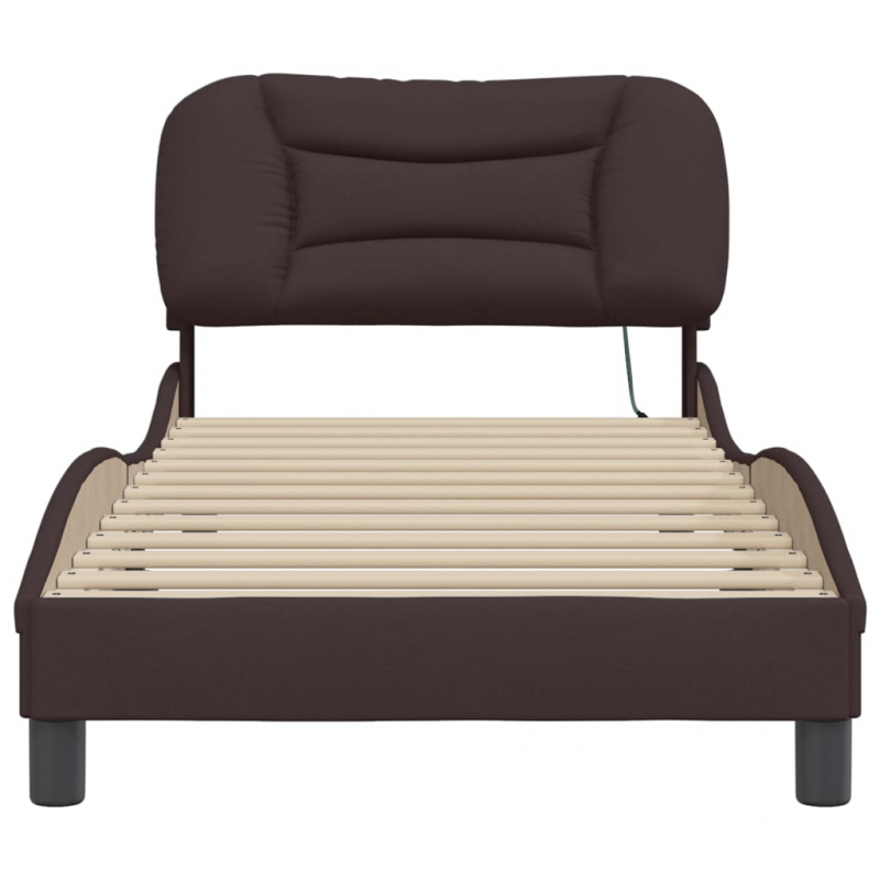 Bettgestell mit LED ohne Matratze Dunkelbraun 90x200 cm Stoff