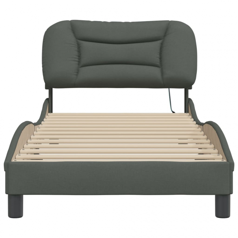 Bettgestell mit LED ohne Matratze Dunkelgrau 90x190 cm Stoff