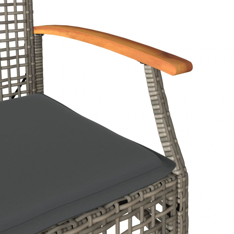 3-tlg. Bistro-Set mit Kissen Grau Poly Rattan Akazienholz