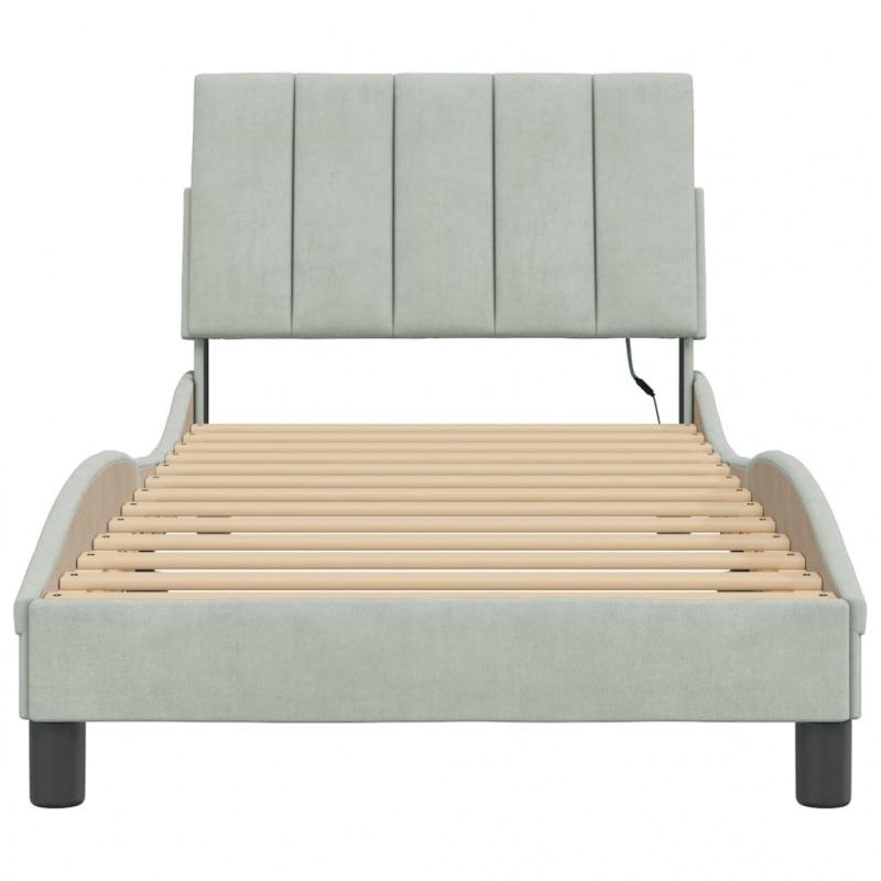 Bettgestell mit LED-Leuchten Hellgrau 90x190 cm Samt