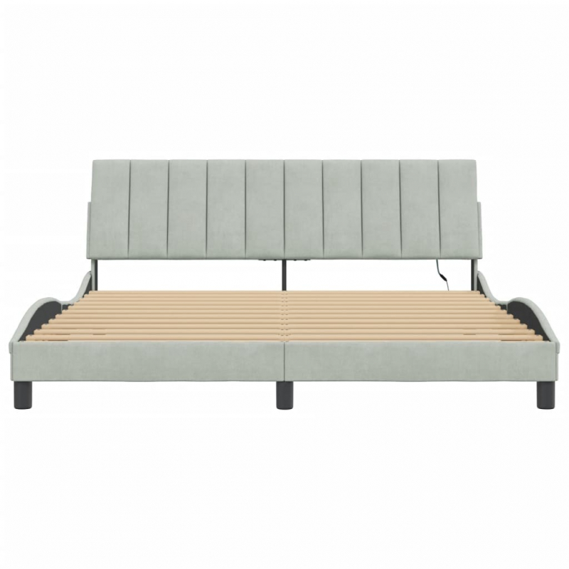 Bettgestell mit LED-Leuchten Hellgrau 180x200 cm Samt