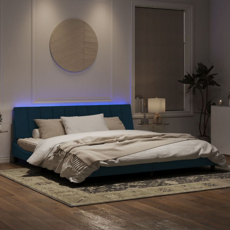 Bettgestell mit LED-Leuchten Blau 200x200 cm Samt