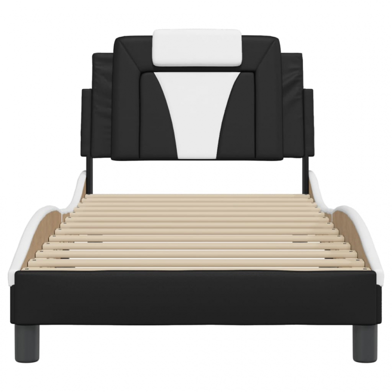 Bettgestell mit Kopfteil Schwarz und Weiß 90x190 cm Kunstleder