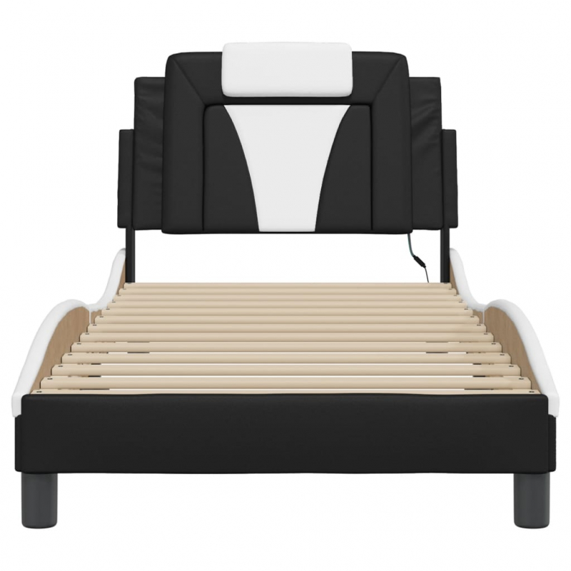Bettgestell mit LED Schwarz und Weiß 90x200 cm Kunstleder