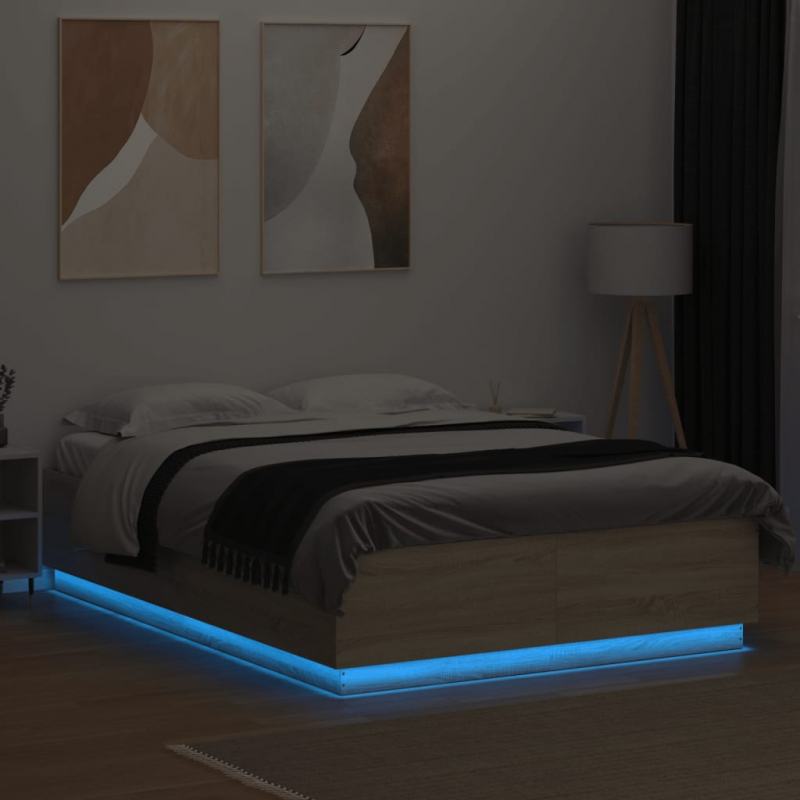 Bettgestell mit LED Sonoma-Eiche 160x200 cm Holzwerkstoff