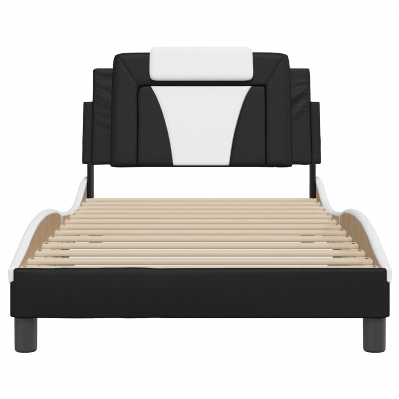 Bettgestell mit Kopfteil Schwarz und Weiß 100x200 cm Kunstleder