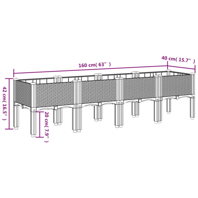 Pflanzkasten mit Beinen Hellgrau 160x40x42 cm PP