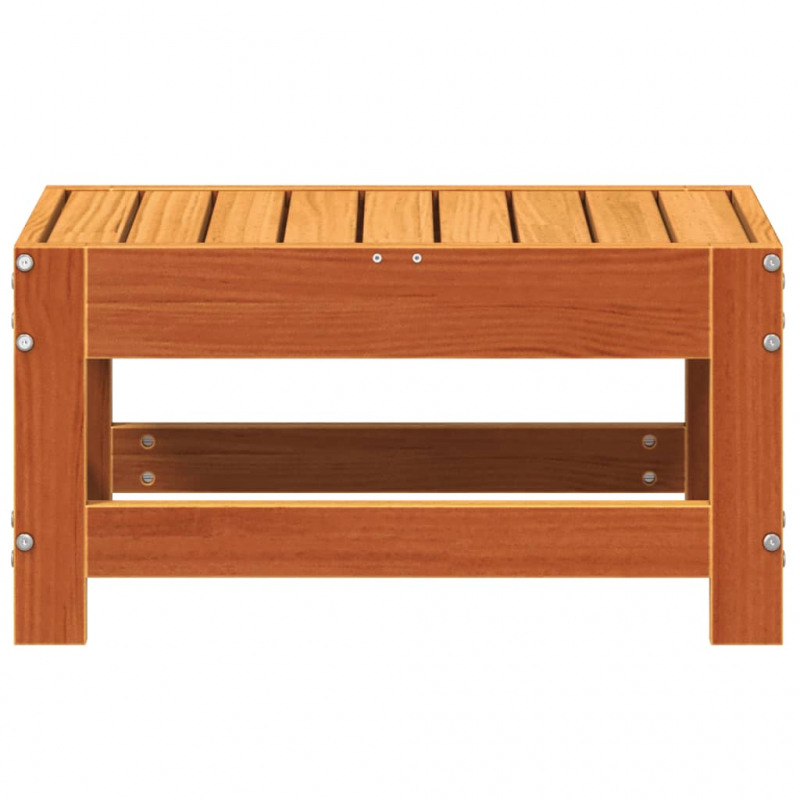 Dieser Outdoor-Hocker aus Holz ist eine großartige Ergänzung für den Garten, Innenhof, für die Terrasse usw. Auf diesem Outdoor-Möbel lässt es sich wunderbar mit Familie und Freunden plaudern oder einfach nur das Wetter genießen. Massives Kiefernholz: Der Gartensessel ist aus massivem Kiefernholz gefertigt, was ihm Robustheit und Stabilität verleiht. Massives Kiefernholz ist ein wunderschönes Naturmaterial. Kiefernholz weist eine gerade Maserung auf und die Aststellen verleihen dem Material seine charakteristische, rustikale Optik.Vielseitig einsetzbar: Dieser Outdoor-Hocker lässt sich als Sitzgelegenheit oder zum Ausruhen der Füße verwenden, kann aber auch als Couchtisch für Getränke, Snacks oder Dekorationen dienen.Latten-Design: Das Latten-Design verhindert die Ansammlung von Wasser auf dem Gartenstuhl, hält die Sitzfläche trocken und verhindert Verrottung.Modulares Design: Der modulare Fußhocker lässt sich flexibel und einfach umstellen. Du kannst es mit anderen modularen Gartensofa-Elementen kombinieren, die im Dropdown-Menü zur Auswahl stehen, um dein persönliches Outdoor-Lounge-Set nach Belieben zu erstellen! Gut zu wissen:Wir empfehlen dir, deine Gartenmöbel mit einer wasserdichten Hülle zu schützen, um lange Zeit eine ansprechende Optik aufzuweisen.