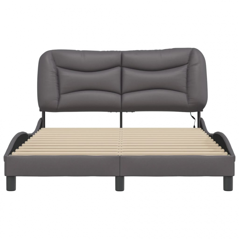 Bettgestell mit LED Grau 140x190 cm Kunstleder