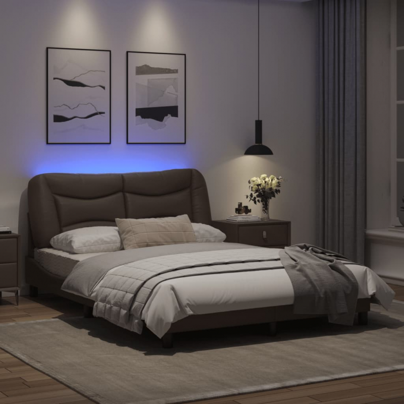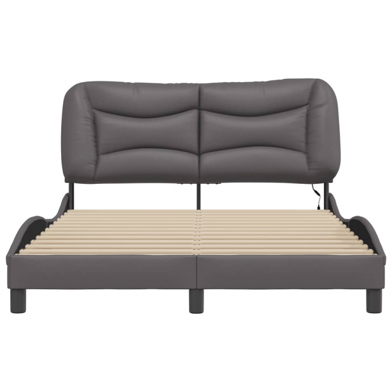 Bettgestell mit LED Grau 140x200 cm Kunstleder