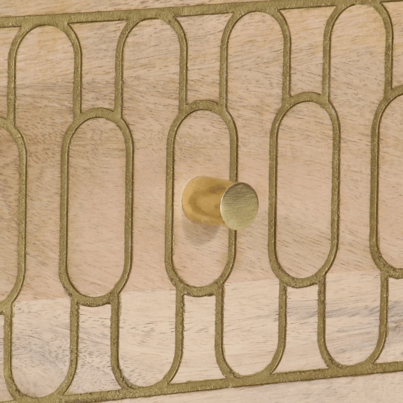 Dieser robuste TV-Schrank wird mit seinem trendigen und dennoch praktischen Design sicherlich der Mittelpunkt Ihres Wohnzimmers werden. Mango-Massivholz: Massives Mangoholz ist ein robustes, tropisches Hartholz, aus dem sich robuste Möbel herstellen lassen. Die optisch ansprechende Holzmaserung macht jedes Möbelstück zu einem Unikat. Aus massivem Mangoholz gefertigt, ist das TV-Möbel langlebig und stabil.Viel Stauraum: Das TV-Möbel verfügt über einen großen Stauraum, der ideal für die Aufbewahrung all deiner Zeitschriften, DVDs und anderer Gegenstände ist.Präsentation: Die stabile Oberplatte des Medienschrank bietet den idealen Platz, um Dekoartikel wie Bilderrahmen und Pflanzen zur Schau zu stellen.Möbelbeine aus Holz: Die Holzbeine verleihen dem Möbelstück eine natürliche und angenehme Optik und sorgen gleichzeitig für Stabilität. Der Schrank fügt sich daher harmonisch in jede Inneneinrichtung ein.Handgeschnitztes Design: Mit einem handgeschnitzten Muster versehen, bringt dieser TV-Schrank Luxus und Eleganz in dein Interieur und wird überall ein echter Hingucker sein. Gut zu wissen:Jedes Stück ist ein Unikat, das in Farbe und Maserung variiert. Die Lieferung erfolgt in zufälliger Reihenfolge, wodurch die Exklusivität und Individualität deines Produkts gewährleistet wird.