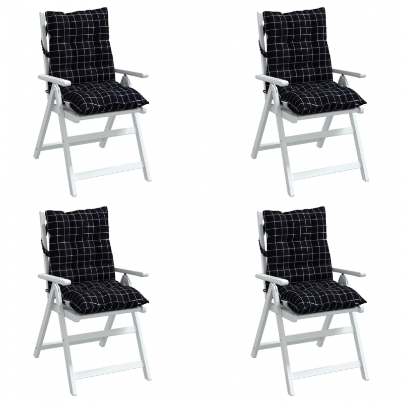 Niedriglehner-Auflagen 4 Stk. Schwarz Karomuster Oxford-Gewebe