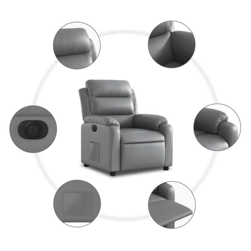Lehne dich zurück und entspanne dich in diesem äußerst bequemen Fernsehsessel! Elektrische Liegefunktion: Dieser Relaxsessel ist mit einem Elektromotor ausgestattet, der Fußstütze und Rückenlehne durch einfaches Drücken des seitlichen Knopfes automatisch in jede gewünschte Position bringt. Diese Funktion ermöglicht eine maximale Neigung von 135 Grad. Darüber hinaus lässt sich die Rückenlehne auf Knopfdruck automatisch in die ursprünglichen Position zurückbringen.Bequemes Sitzerlebnis: Der dick gepolsterte Sitz, die Rückenlehne und die breiten, mit Kunstleder bezogenen Armlehnen sorgen für ein behagliches und angenehmes Sitzgefühl. Künstliches Leder ist ein äußerst langlebiges Material. Es ist schmutzabweisend und lässt sich mit einem feuchten Tuch einfach reinigen. Durch die glatte Oberfläche weist es die luxuriöse Schönheit von Echtleder auf.Praktische Seitentasche: Dieser Sessel verfügt über eine Seitentasche, in der du wichtige Sachen griffbereit aufbewahren kannst.Solider und stabiler Rahmen: Der Rahmen aus Holz und Metall sorgt für eine solide Struktur und hohe Stabilität. Dieser TV-Sessel ist bequem und langlebig.