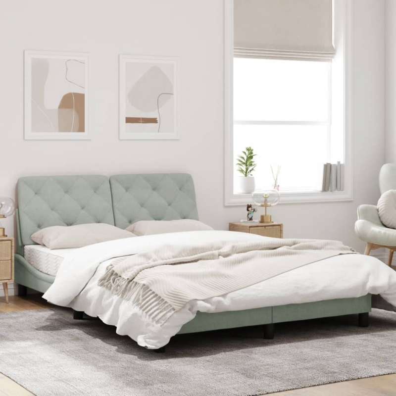 Bettgestell mit LED-Leuchten Hellgrau 140x200 cm Samt