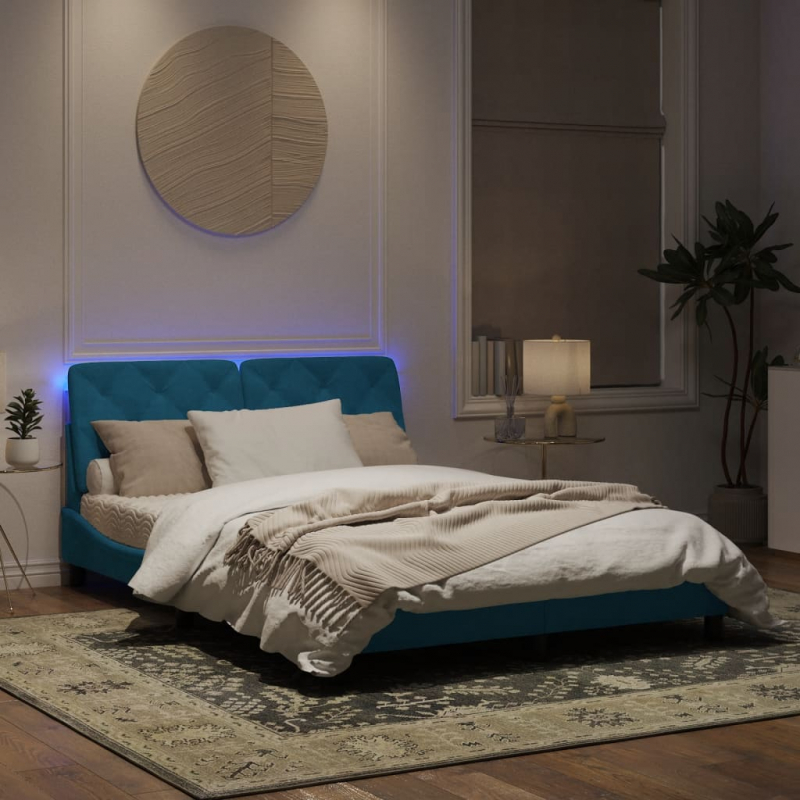 Bettgestell mit LED-Leuchten Blau 160x200 cm Samt