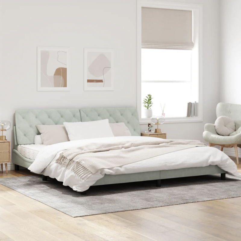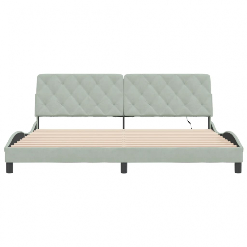 Bettgestell mit LED-Leuchten Hellgrau 200x200 cm Samt
