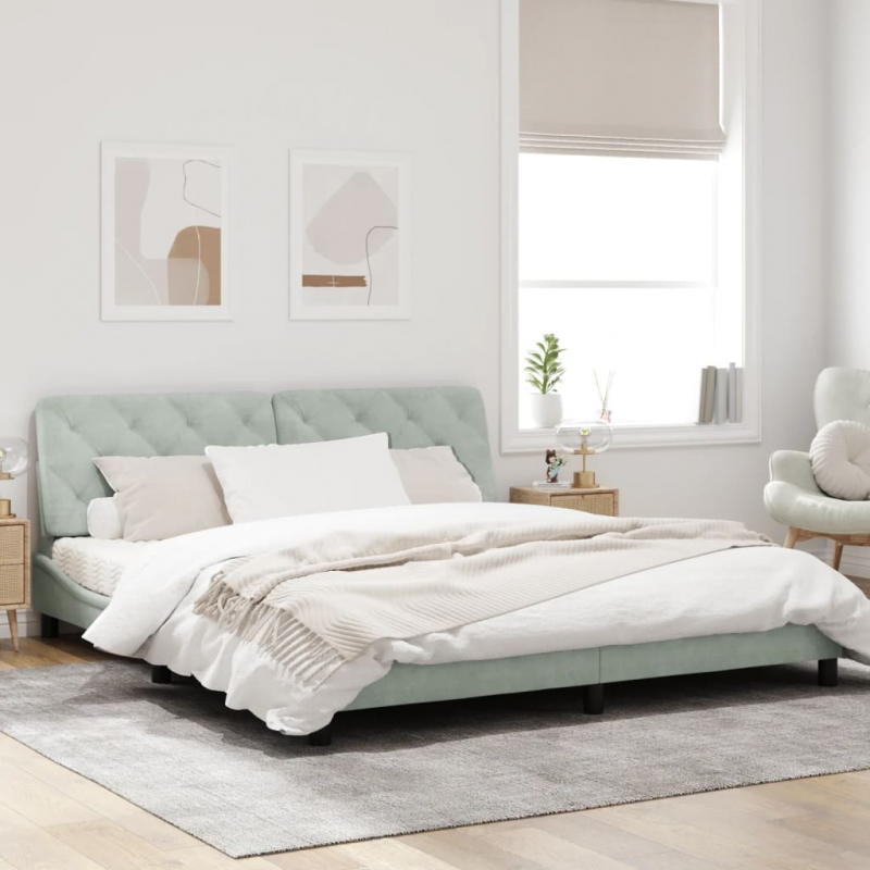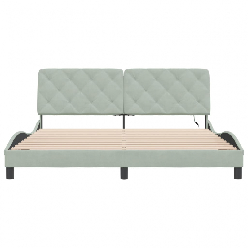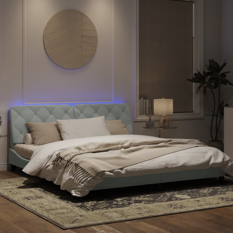 Bettgestell mit LED-Leuchten Hellgrau 180x200 cm Samt