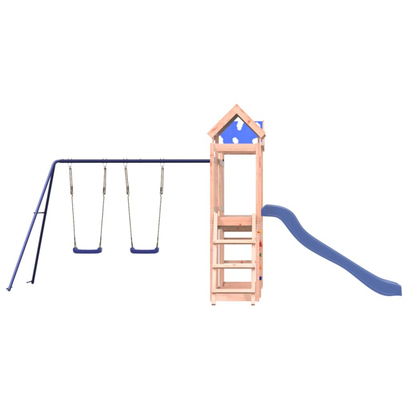 Möchtest du deinen Kindern ihren eigenen Spielplatz schenken? Dieses Spielgerät aus Holz ermöglicht fantasievolle Abenteuer im eigenen Garten! Langlebiges Material: Der Rahmen des Spielturms ist aus massivem Douglasienholz gefertigt. Douglasienholz ist für seine Stärke und Haltbarkeit bekannt. Seine satte rotbraune Farbe und seine einzigartige Maserung verleihen ihm eine warme und natürliche Optik. Dank seiner ausgezeichneten Stabilität und Witterungsbeständigkeit eignet es sich ideal für die Herstellung von Innen- und Außenmöbeln.Stabiler Holzrahmen: Der Holzrahmen verleiht dem Spielhaus Robustheit und Stabilität. Zudem gewährleistet das "A"-förmige Gestell die Stabilität der Kinderschaukel.Spielzentrum: Der Spielturm verfügt über eine 90 cm hohe Plattform, eine Wellenrutsche, zwei Schaukeln, eine Leiter sowie Sandkästen. So können deine Kleinen auch ihre Freunde zum Mitspielen einladen.Durchdachtes Design: Die umlaufenden Holzgeländer gewährleisten die Sicherheit der Kinder beim Spielen. Zudem spendet das Wolkendach Schatten an heißen Sommertagen.Unendlicher Spielspaß: Dieser unterhaltsame Kletterturm aus Holz bietet Kindern und ihren Freunden den perfekten Platz, um sich auszutoben, mehr Spaß miteinander zu haben und Erinnerungen zu schaffen! Achtung:Nur für den HausgebrauchFür den AußenbereichNicht geeignet für Kinder unter 3 JahrenEmpfohlenes Benutzeralter: 3-8 JahreMaximales Gewicht pro Benutzer: 45 kg Gut zu wissen:Das Produkt muss zur Verringerung der Kippgefahr verankert werden; Anker sind nicht im Lieferumfang enthalten.