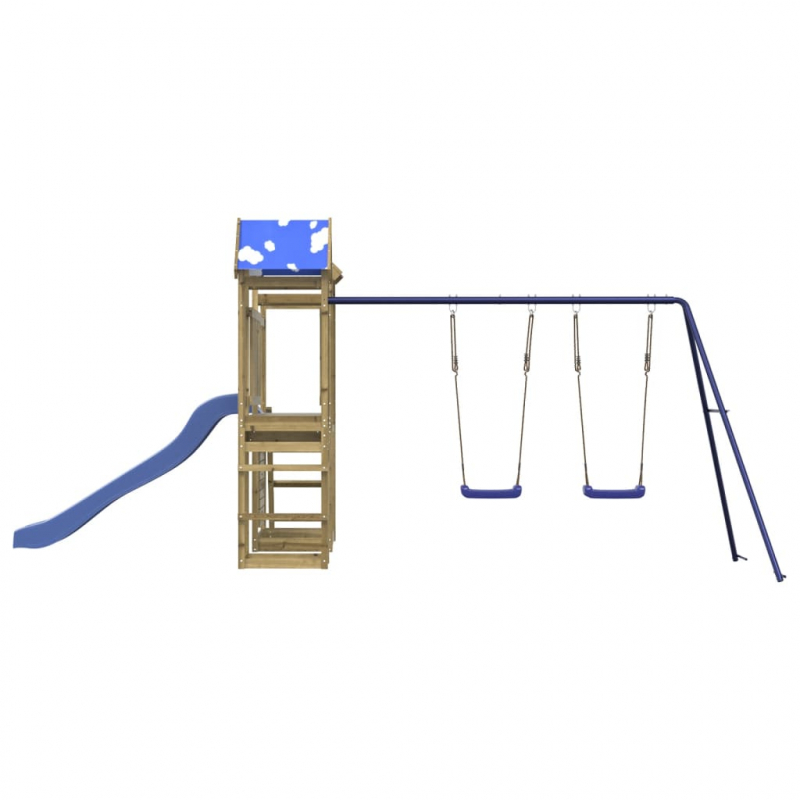 Möchtest du deinen Kindern ihren eigenen Spielplatz schenken? Dieses Spielgerät aus Holz ermöglicht fantasievolle Abenteuer im eigenen Garten! Langlebiges Material: Der Rahmen des Spielturms besteht aus Kiefernholz, das unter Kesseldruck imprägniert wurde. Massives Kiefernholz ist für seine Stärke und Haltbarkeit bekannt. Seine gerade Maserung und die charakteristischen Aststellen tragen zu seinem rustikalen Charme bei. Es wurde mit einer Konservierungslösung imprägniert und mit Autoklaven behandelt, um eine höhere Verrottungs- und Witterungsbeständigkeit zu besitzen.Stabiler Holzrahmen: Der Holzrahmen verleiht dem Spielhaus Robustheit und Stabilität. Zudem gewährleistet das "A"-förmige Gestell die Stabilität der Kinderschaukel.Spielzentrum: Der Spielturm verfügt über eine 90 cm hohe Plattform, eine Wellenrutsche, zwei Schaukeln, eine Leiter sowie Sandkästen. So können deine Kleinen auch ihre Freunde zum Mitspielen einladen.Durchdachtes Design: Die umlaufenden Holzgeländer gewährleisten die Sicherheit der Kinder beim Spielen. Zudem spendet das Wolkendach Schatten an heißen Sommertagen.Unendlicher Spielspaß: Dieser unterhaltsame Kletterturm aus Holz bietet Kindern und ihren Freunden den perfekten Platz, um sich auszutoben, mehr Spaß miteinander zu haben und Erinnerungen zu schaffen! Achtung:Nur für den HausgebrauchFür den AußenbereichNicht geeignet für Kinder unter 3 JahrenEmpfohlenes Benutzeralter: 3-8 JahreMaximales Gewicht pro Benutzer: 45 kg Gut zu wissen:Das Produkt muss zur Verringerung der Kippgefahr verankert werden; Anker sind nicht im Lieferumfang enthalten.
