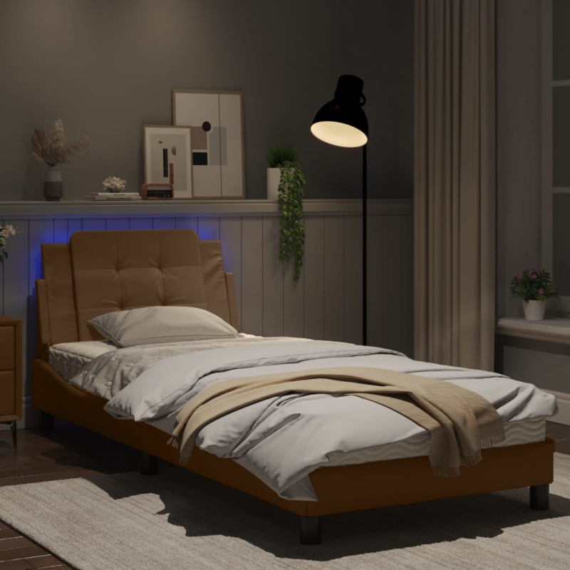 Bettgestell mit LED Cappuccino-Braun 90x200 cm Kunstleder