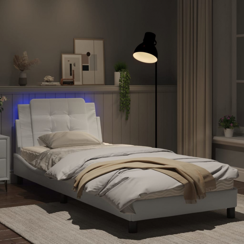 Bettgestell mit LED Weiß 90x200 cm Kunstleder