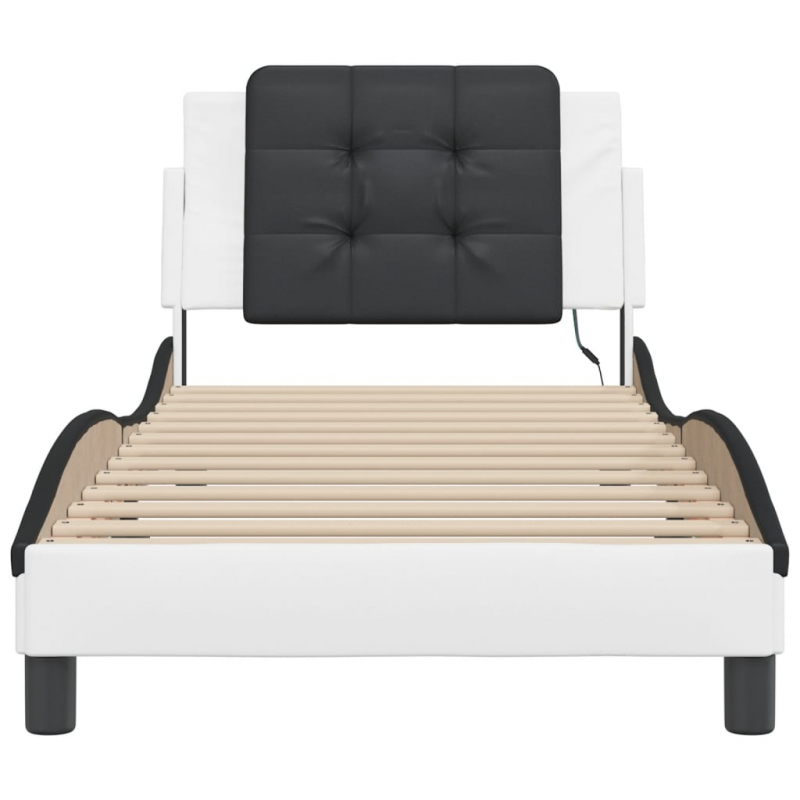 Bettgestell mit LED Weiß und Schwarz 100x200 cm Kunstleder