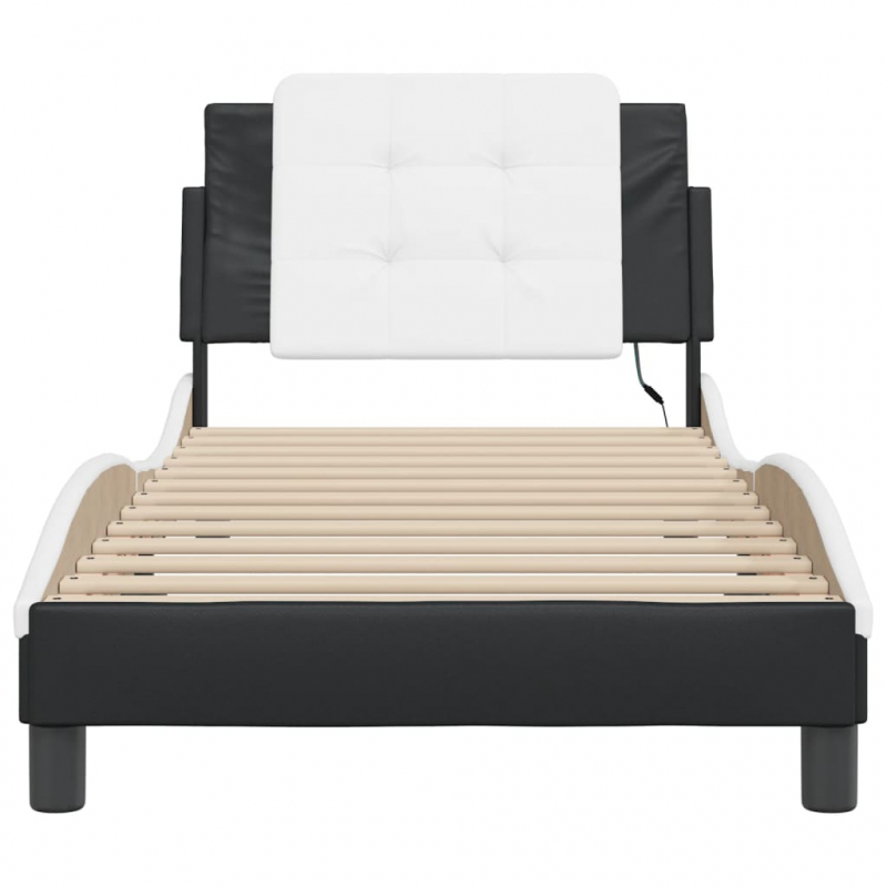 Bettgestell mit LED Schwarz und Weiß 100x200 cm Kunstleder
