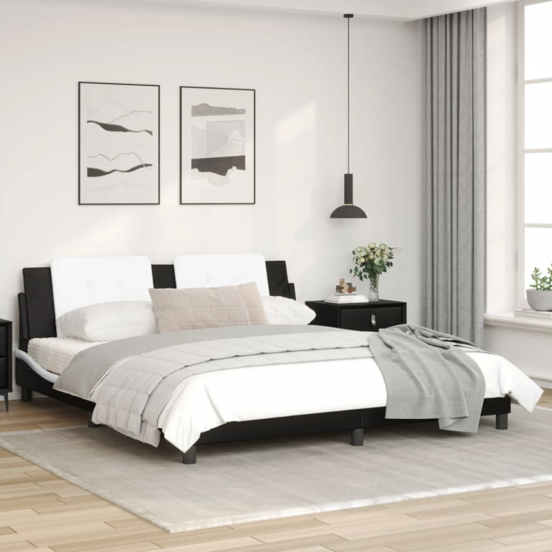 Bettgestell mit Kopfteil Schwarz und Weiß 180x200 cm Kunstleder