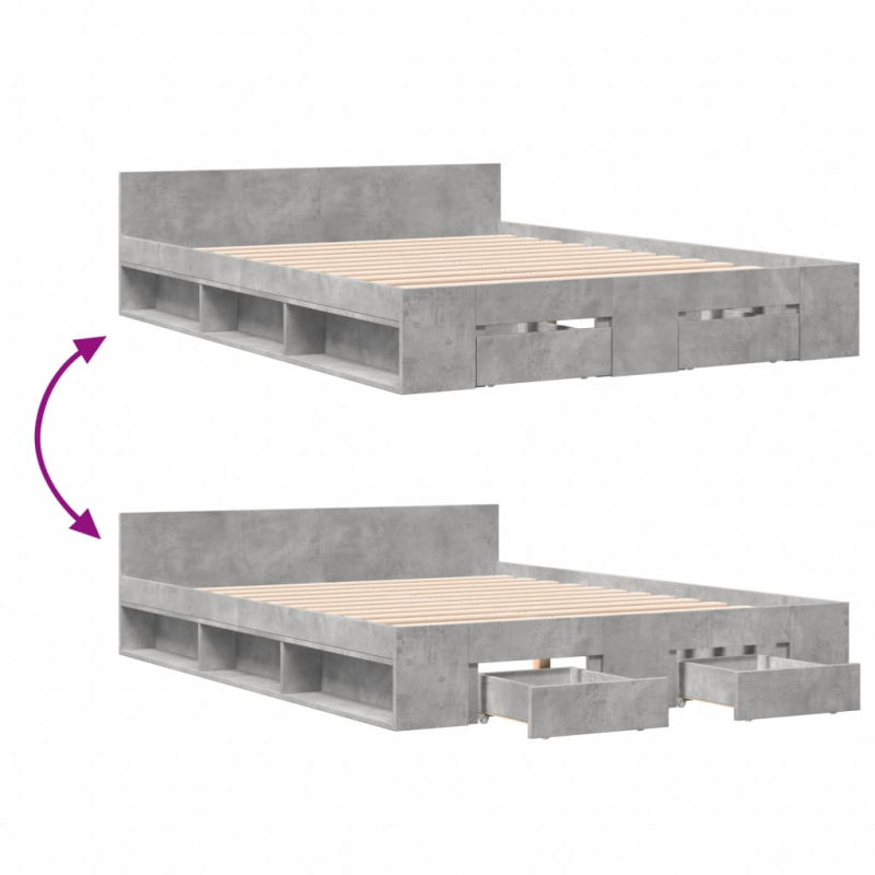 Bettgestell mit Schubladen Betongrau 120x200 cm Holzwerkstoff