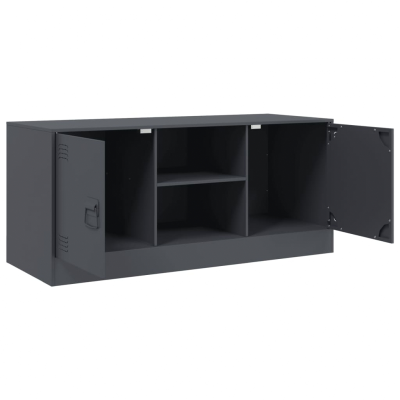 Dieser robuste TV-Schrank wird mit seinem trendigen und dennoch praktischen Design sicherlich der Mittelpunkt Ihres Wohnzimmers werden. Stabiles Material: Das Gestell des TV-Schranks besteht aus kaltgewalztem Stahl. Kaltgewalzter Stahl ist eine Art kohlenstoffarmer Stahl, der im „Kaltwalzverfahren“ hergestellt und bei nahezu normalen Raumtemperaturen verarbeitet wird. Kaltgewalzter Stahl besitzt eine glattere Oberfläche, eine höhere Festigkeit und lässt sich präziser verarbeiten.Reichlich Stauraum: Dieser Schrank bietet praktischen Stauraum, um deine Zeitschriften, Bücher, Fernbedienungen und andere kleine Gegenstände gut geordnet und in Reichweite aufzubewahren.Pflegeleicht: Der Tisch lässt sich mit einem feuchten Tuch leicht reinigen und erfordert wenig Pflege.Praktischer Griff: Der TV-Schrank ist mit 2 Griffen ausgestattet, die das Öffnen und Schließen des Schranks erleichtern und gleichzeitig zu seiner ansprechenden Optik beitragen.