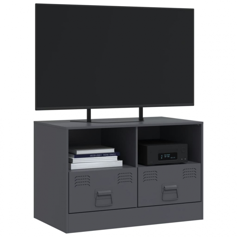 Dieser robuste TV-Schrank wird mit seinem trendigen und dennoch praktischen Design sicherlich der Mittelpunkt Ihres Wohnzimmers werden. Stabiles Material: Das Gestell des TV-Schranks besteht aus kaltgewalztem Stahl. Kaltgewalzter Stahl ist eine Art kohlenstoffarmer Stahl, der im „Kaltwalzverfahren“ hergestellt und bei nahezu normalen Raumtemperaturen verarbeitet wird. Kaltgewalzter Stahl besitzt eine glattere Oberfläche, eine höhere Festigkeit und lässt sich präziser verarbeiten.Reichlich Stauraum: Dieser Schrank bietet praktischen Stauraum, um deine Zeitschriften, Bücher, Fernbedienungen und andere kleine Gegenstände gut geordnet und in Reichweite aufzubewahren.Pflegeleicht: Der Tisch lässt sich mit einem feuchten Tuch leicht reinigen und erfordert wenig Pflege.Praktischer Griff: Der TV-Schrank ist mit 2 Griffen ausgestattet, die das Öffnen und Schließen des Schranks erleichtern und gleichzeitig zu seiner ansprechenden Optik beitragen.