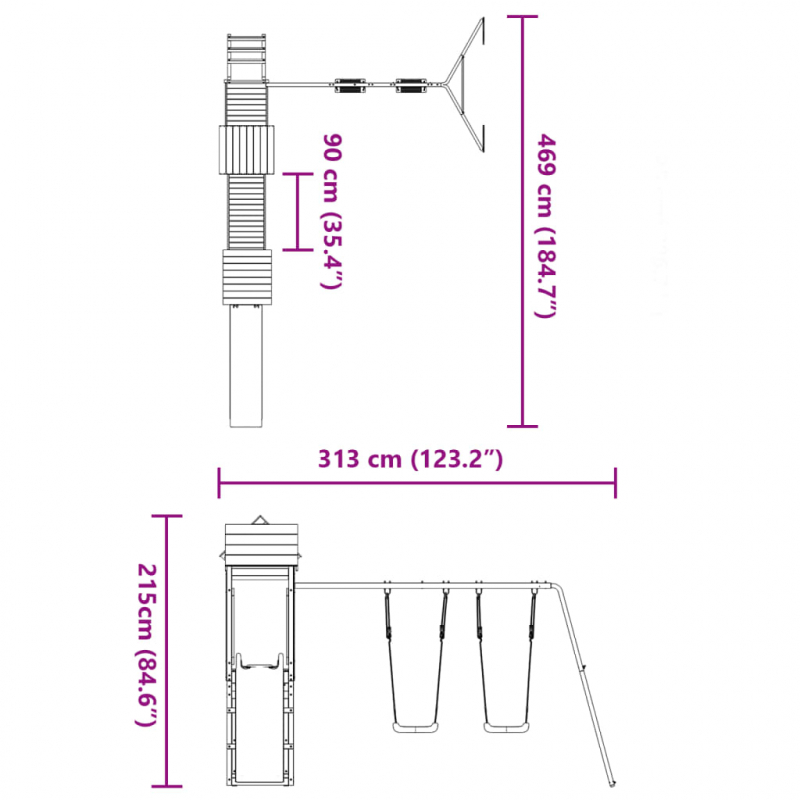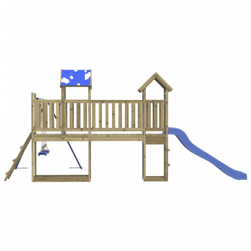 Möchtest du deinen Kindern ihren eigenen Spielplatz schenken? Dieses Spielgerät aus Holz ermöglicht fantasievolle Abenteuer im eigenen Garten! Langlebiges Material: Der Rahmen des Spielturms besteht aus Kiefernholz, das unter Kesseldruck imprägniert wurde. Massives Kiefernholz ist für seine Stärke und Haltbarkeit bekannt. Seine gerade Maserung und die charakteristischen Aststellen tragen zu seinem rustikalen Charme bei. Es wurde mit einer Konservierungslösung imprägniert und mit Autoklaven behandelt, um eine höhere Verrottungs- und Witterungsbeständigkeit zu besitzen.Stabiler Holzrahmen: Der Holzrahmen verleiht dem Spielhaus Robustheit und Stabilität. Zudem gewährleistet das "A"-förmige Gestell die Stabilität der Kinderschaukel.Spielzentrum: Der Spielturm verfügt über eine 90 cm hohe Plattform, eine Wellenrutsche, zwei Schaukeln, eine Leiter sowie Sandkästen. So können deine Kleinen auch ihre Freunde zum Mitspielen einladen.Durchdachtes Design: Die umlaufenden Holzgeländer gewährleisten die Sicherheit der Kinder beim Spielen. Zudem spendet das Wolkendach Schatten an heißen Sommertagen.Unendlicher Spielspaß: Dieser unterhaltsame Kletterturm aus Holz bietet Kindern und ihren Freunden den perfekten Platz, um sich auszutoben, mehr Spaß miteinander zu haben und Erinnerungen zu schaffen! Achtung:Nur für den HausgebrauchFür den AußenbereichNicht geeignet für Kinder unter 3 JahrenEmpfohlenes Benutzeralter: 3-8 JahreMaximales Gewicht pro Benutzer: 45 kg Gut zu wissen:Das Produkt muss zur Verringerung der Kippgefahr verankert werden; Anker sind nicht im Lieferumfang enthalten.