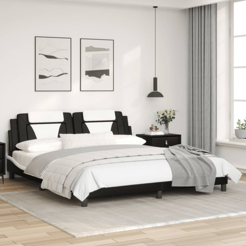 Mit diesem Bettgestell mit Kopfteil genießt du einen besseren, erholsameren Schlaf! Es ist eine angenehme Bereicherung für jedes Schlafzimmer. Langlebiges Kunstleder: Hochwertiges Kunstleder ist ein äußerst langlebiges Material. Es ist schmutzabweisend und lässt sich mit einem feuchten Tuch einfach reinigen. Durch die glatte Oberfläche weist es die Schönheit von Echtleder und einen luxuriösen Look auf.Sperrholzlatten: Die Sperrholzlatten sorgen für eine gute Gewichtsverteilung und auch dafür, dass die Matratze bei jeder Bewegung deines Körpers während des Schlafes an Ort und Stelle bleibt.Ausgezeichnete Unterstützung: Das Kopfteil-Kissen ist mit Schaumstoff gefüllt und fühlt sich daher extra weich und komfortabel an. Es bietet eine ausgezeichnete Rückenunterstützung beim Sitzen im Bett oder Fernsehen.Wellenförmiges Seitendesign: Das stilvolle und raffinierte Design in Wellenform verleiht deiner Einrichtung eine moderne und elegante Note und macht das Bettgestell zum Mittelpunkt deines Schlafzimmers. Gut zu wissen:Bei diesem Bett ist keine Matratze im Lieferumfang enthalten. Wir bieten jedoch eine große Auswahl an Matratzen an. Du kannst in unserem Shop nach einer passenden Matratze suchen.