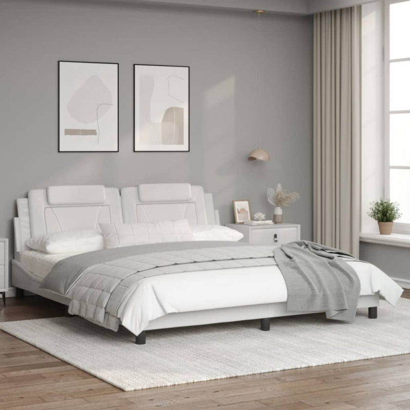 Mit diesem Bettgestell mit Kopfteil genießt du einen besseren, erholsameren Schlaf! Es ist eine angenehme Bereicherung für jedes Schlafzimmer. Langlebiges Kunstleder: Hochwertiges Kunstleder ist ein äußerst langlebiges Material. Es ist schmutzabweisend und lässt sich mit einem feuchten Tuch einfach reinigen. Durch die glatte Oberfläche weist es die Schönheit von Echtleder und einen luxuriösen Look auf.Sperrholzlatten: Die Sperrholzlatten sorgen für eine gute Gewichtsverteilung und auch dafür, dass die Matratze bei jeder Bewegung deines Körpers während des Schlafes an Ort und Stelle bleibt.Ausgezeichnete Unterstützung: Das Kopfteil-Kissen ist mit Schaumstoff gefüllt und fühlt sich daher extra weich und komfortabel an. Es bietet eine ausgezeichnete Rückenunterstützung beim Sitzen im Bett oder Fernsehen.Wellenförmiges Seitendesign: Das stilvolle und raffinierte Design in Wellenform verleiht deiner Einrichtung eine moderne und elegante Note und macht das Bettgestell zum Mittelpunkt deines Schlafzimmers. Gut zu wissen:Bei diesem Bett ist keine Matratze im Lieferumfang enthalten. Wir bieten jedoch eine große Auswahl an Matratzen an. Du kannst in unserem Shop nach einer passenden Matratze suchen.