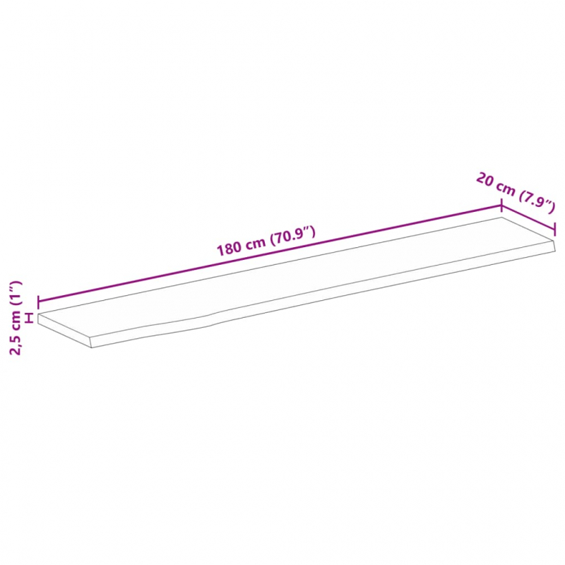 Tischplatte 180x20x2,5 cm Baumkante Massivholz Raues Mangoholz