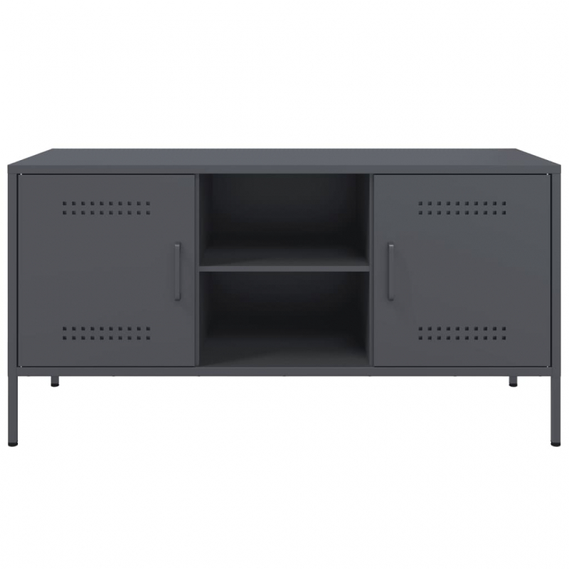Dieser TV-Schrank im Industrie-Stil ist eine zeitlose Ergänzung zu deinem Schlafzimmer oder Wohnzimmer. Robustes und stabiles Gestell: Stahl ist stark, stabil und langlebig, was ihn zur idealen Wahl für eine Vielzahl von Anwendungen macht, von der Möbelherstellung bis hin zum Bauwesen.Reichlich Stauraum: Dieser TV-Ständer bietet reichlich Stauraum, um deine Zeitschriften, Bücher, DVDs und Multimedia-Geräte ordentlich und griffbereit aufzubewahren.Einfache Reinigung: Der TV-Ständer lässt sich leicht mit einem feuchten Tuch reinigen und erfordert wenig Pflege. Achtung:Um ein Umkippen zu vermeiden, sollte dieses Produkt mit der mitgelieferten Wandhalterung gesichert werden.