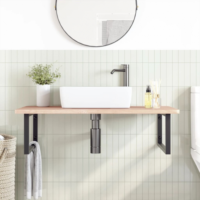 Das Regal lässt sich sicher an der Wand befestigen und bietet eine elegante und platzsparende Lösung für dein Badezimmer. Robust und langlebig: Diese Waschtisch-Platte hat Stahlhalterungen und eine Eichenholz-Platte, wodurch sie robust, stabil und langlebig ist. Platzsparend: Das Schweberegal bietet reichlich Platz für Cremes und verschiedene Kleinigkeiten. Dank der rechteckigen Form der Halterungen kannst du auch Handtücher oder andere Sachen darauf platzsparend aufhängen. Einfache Verwendung: Die Holzplatte ist nicht vorgebohrt, sodass dein Waschbecken je nach Bedarf links, rechts oder in der Mitte angebracht werden kann. Dank der vorgebohrten Löcher in der Halterung lässt sich die Ablage am Waschtisch oder an der Wand mühelos befestigen. Vielseitig einsetzbar: Dank ihres modernen Designs schafft die Ablage zusätzlichen Stauraum und fügt sich harmonisch in die unterschiedlichsten Einrichtungen ein. Gut zu wissen:Die Schrauben sind nicht im Lieferumfang enthalten. Du kannst die Schrauben anhand von den folgenden Informationen separat erwerben. Wandbefestigung: 2 x M8-Dehnschraube pro Halterung Holzplatte: 2 x M5x18-Schraube (T=2) oder 2 x M5x20-Schraube (T=2,5/4 cm) pro Halterung
