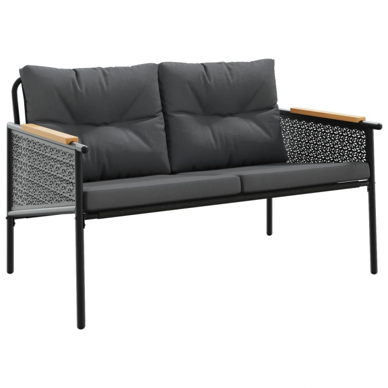 3-tlg. Balkonmöbel-Set mit Kissen Schwarz Stahl