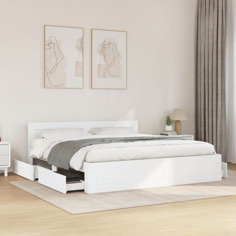 Mit diesem Bett wirst du einen besseren, erholsameren Schlaf genießen! Er ist eine einladende Ergänzung für jedes Schlafzimmer. Langlebiges Material: Dieses Bettgestell ist aus Holzwerkstoff gefertigt. Holzwerkstoff ist ein Material von außergewöhnlicher Qualität mit glatter Oberfläche, das sich durch Festigkeit, Stabilität und Feuchtigkeitsbeständigkeit auszeichnet.Lattenrost für optimale Unterstützung: Der Bettrahmen ist mit einem Lattenrost ausgestattet, der deine Matratze stützt und atmungsaktiv hält.Stauraum: Dieses Bettgestell verfügt über Schubladen, in denen du Bettzeug, Zeitschriften, Bücher, Spielzeuge und andere Kleinigkeiten gut organisiert aufbewahren kannst.Ausgezeichnete Unterstützung: Das Kopfteil bietet eine hervorragende Rückenunterstützung beim Lesen oder Fernsehen. Gut zu wissen:Bei diesem Bett ist keine Matratze im Lieferumfang enthalten. Wir bieten jedoch eine große Auswahl an Matratzen an. Du kannst in unserem Shop nach einer passenden Matratze suchen.