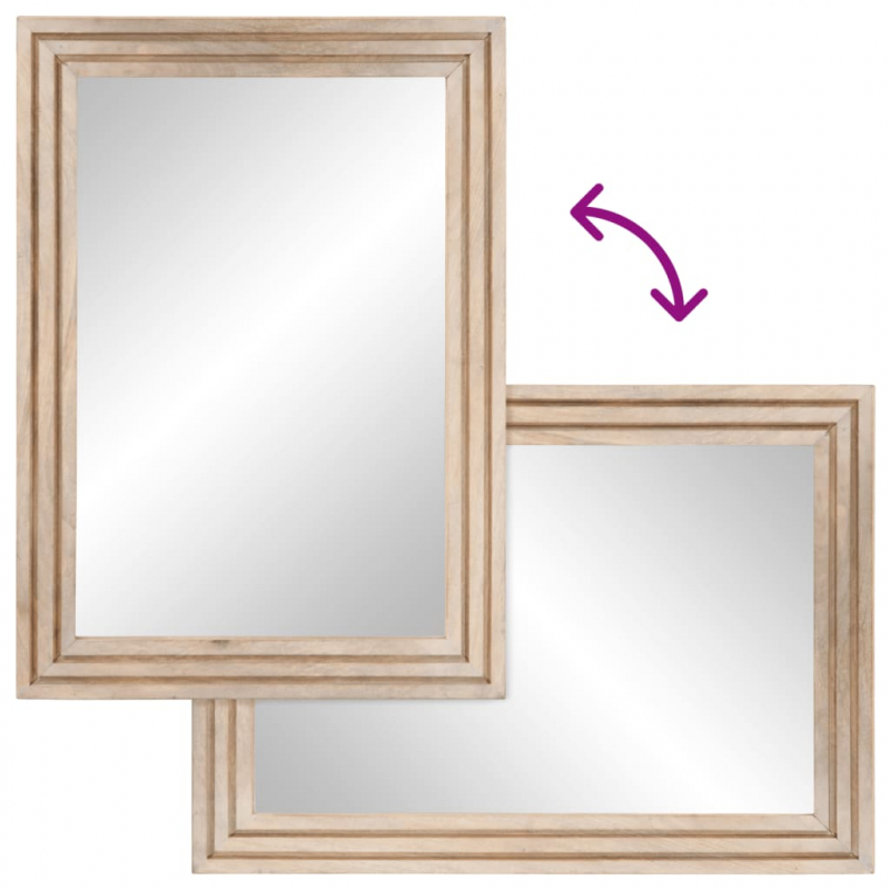 Verleihe deiner Inneneinrichtung eine optisch ansprechende Note mit diesem Badezimmerspiegel. Mango-Massivholz: Massives Mangoholz ist ein robustes, tropisches Hartholz, aus dem sich robuste Möbel herstellen lassen. Die optisch ansprechende Holzmaserung macht jedes Möbelstück zu einem Unikat. Der aus massivem Mangoholz gefertigte Spiegel ist leicht zu reinigen.Wandmontage: Der Kosmetikspiegel lässt sich an der Wand befestigen, wodurch er sich sehr gut für kleinere Räume eignet.Klares Spiegelbild: Der Schminkspiegel bietet eine klare Spiegelung. So kannst du ein schönes und natürliches Spiegelbild genießen, wenn du vor ihm steht.Wandmontage: Mit den Haken kannst du den Spiegel je nach Bedarf vertikal oder horizontal an der Wand aufhängen. Gut zu wissen:Schrauben und Dübel für die Montage an der Wand sind nicht enthalten. Passendes Montagezubehör muss separat gekauft werden. Wenn du dir bezüglich der Montage nicht sicher bist, wende dich bitte an einen Fachmann. Bitte lies und befolge jeden Schritt in der Anleitung.