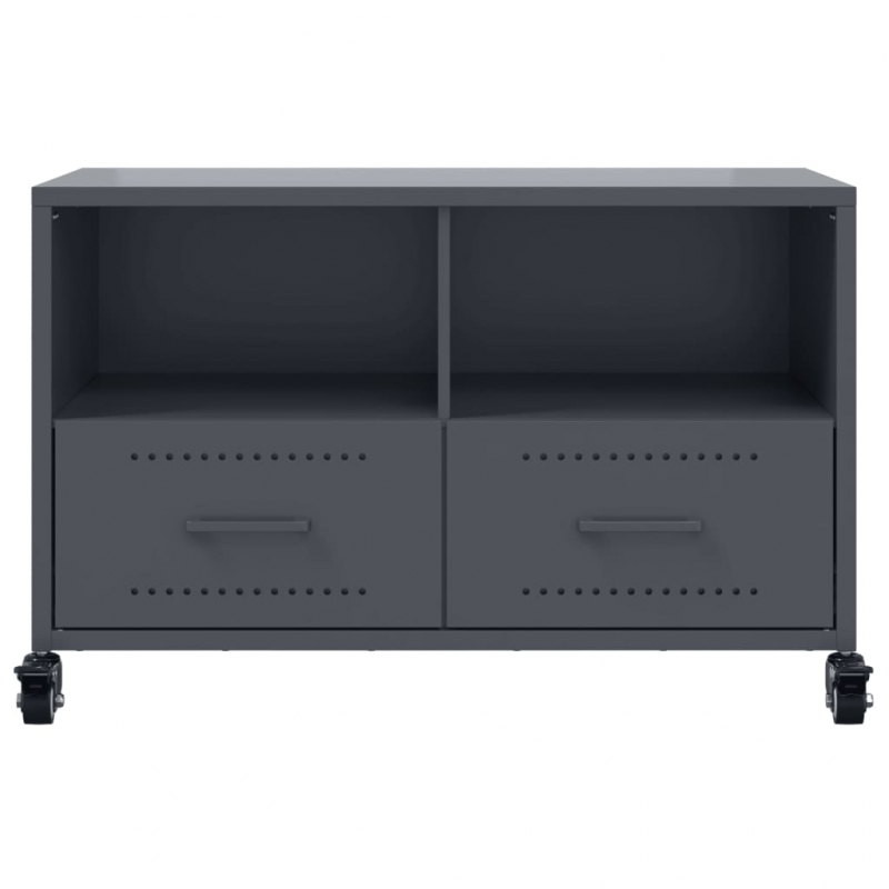 Mit seinem schlichten und dennoch praktischen Design passt dieser TV-Schrank perfekt zu deinem Wohnzimmer. Langlebiges Material: Stahl ist ein außergewöhnlich hartes und starkes Material. Er bietet Robustheit und Stabilität. Kaltgewalztes Stahlblech weist eine glatte Oberfläche auf und lässt sich präzise verarbeiten.Präsentation: Die stabile Oberplatte des Medienschrank bietet den idealen Platz, um Dekoartikel wie Bilderrahmen und Pflanzen zur Schau zu stellen.Viel Stauraum: Der TV-Ständer verfügt über 2 Schubladen und 2 Ablagen und bietet den idealen Platz, um all deine Zeitschriften, DVDs und andere Gegenstände aufzubewahren.Pflegeleicht: Dank seiner schmutzabweisenden Oberfläche lässt sich der TV-Schrank leicht abwischen und reinigen, um stets brandneu auszusehen.Einfaches Umstellen: Dieser Schrank verfügt über 4 Rollen und lässt sich daher flexibel und mühelos umher verschieben.