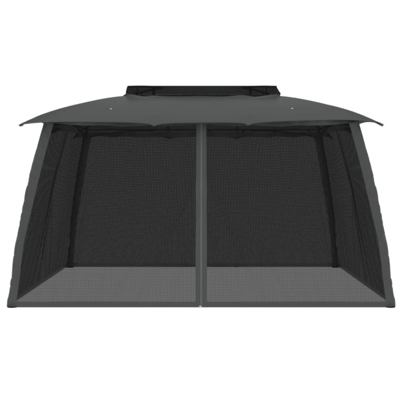 Pavillon mit Doppeldach & Netzwänden Anthrazit 3,93x2,93m Stahl