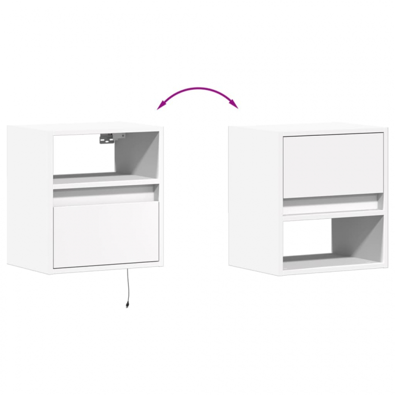 Verschönere dein Schlafzimmer mit dieser Wand- Nachtkonsole mit LED-Beleuchtung! Sie passt zu jedem Einrichtungsstil! Starkes und langlebiges Material: Holzwerkstoff ist ein langlebiges und robustes Material mit einer glatten Oberfläche, das gegen Feuchtigkeit, Verformung und Rissbildung beständig ist, wodurch es eine zuverlässigen Wahl für die Herstellung von Möbeln ist.RGB-LED-Beleuchtung für ein angenehmes Ambiente: Dieser Nachttisch verfügt über LED-Leuchten, die einfach eingestellt werden können, um eine personalisierte Lichtshow zu erzeugen. Du kannst die Modi, Farben und Helligkeit anpassen, um das Ambiente in deinem Wohnraum zu verbessern.Ausreichend Stauraum: Dieser Nachttisch hat 1 Schublade und 1 Fach, die ausreichend Platz bieten, um deine Zeitschriften, Bücher, Fernbedienungen und andere kleine Gegenstände gut organisiert und in Reichweite aufzubewahren.Platzsparend: Das Design maximiert den ungenutzten Platz an der Wand und verwandelt den Nachtschrank in ein kompaktes Aufbewahrungsmöbel. Gut zu wissen:Schrauben und Dübel sind für die Befestigung an der Wand nicht im Lieferumfang enthalten. Wir empfehlen dir, speziell für deine Wände geeignete Schrauben und Dübel zu finden und zu verwenden. Im Zweifelsfall wende dich an einen Fachmann. Bitte lese und befolge jeden Schritt der Anweisungen.Das Produkt verfügt über einen USB-Anschluss, für den eine zertifizierte 5V-USB-Stromquelle erforderlich ist (nicht im Lieferumfang enthalten).