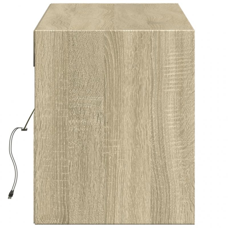 Dieser TV-Wandschrank bietet die perfekte Lösung, um zusätzlichen Stauraum in deinem Wohnraum zu schaffen und für Ordnung zu sorgen.Starkes und langlebiges Material: Holzwerkstoff ist ein langlebiges und robustes Material mit einer glatten Oberfläche, das gegen Feuchtigkeit, Verformung und Rissbildung beständig ist, wodurch es eine zuverlässigen Wahl für die Herstellung von Möbeln ist.RGB-LED-Leuchten für ein angenehmes Ambiente: Dieser TV-Schrank verfügt über LED-Beleuchtung, die einfach eingestellt werden kann, um eine personalisierte Lichtshow zu erzeugen. Du kannst die Modi, Farben und Helligkeit anpassen, um die Atmosphäre in deinem Wohnraum zu verbessern.Reichlich Stauraum: Dieses TV-Möbel verfügt über 2 Schubladen, die ausreichend Platz für Bücher, DVDs, CDs, Zeitschriften, Elektronikgeräte und andere Gegenstände bieten – für die ordentliche und griffbereite Aufbewahrung.Platzsparend: Das Design maximiert den ungenutzten Platz an der Wand und verwandelt den Nachtschrank in ein kompaktes Aufbewahrungsmöbel.DIY-Design: Der TV-Wandschrank bietet unendliche Gestaltungsmöglichkeiten, sodass du ihn selbstständig verwenden oder mit anderen TV-Möbeln kombinieren kannst, um eine komplette Wohnwand zu schaffen.Gut zu wissen:Schrauben und Dübel sind für die Befestigung an der Wand nicht im Lieferumfang enthalten. Wir empfehlen dir, speziell für deine Wände geeignete Schrauben und Dübel zu finden und zu verwenden. Im Zweifelsfall wende dich an einen Fachmann. Bitte lese und befolge jeden Schritt der Anweisungen.Das Produkt verfügt über einen USB-Anschluss, für den eine zertifizierte 5V-USB-Stromquelle erforderlich ist (nicht im Lieferumfang enthalten).