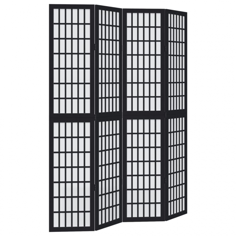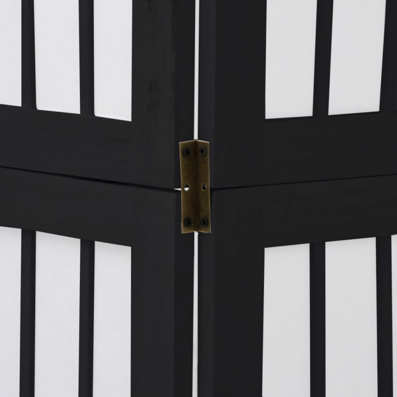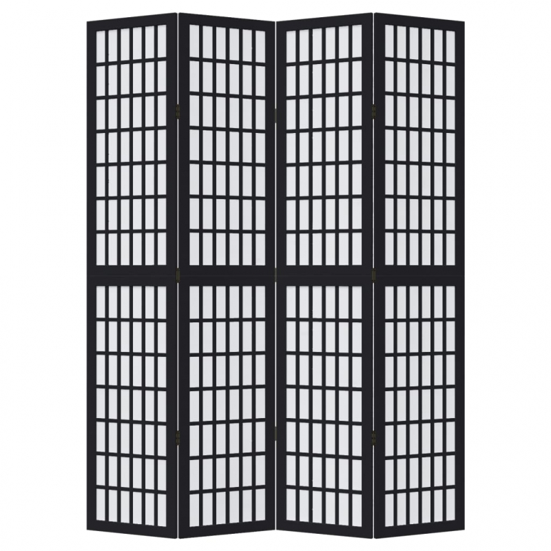 4-tlg. Paravent Schwarz Massivholz Paulownia