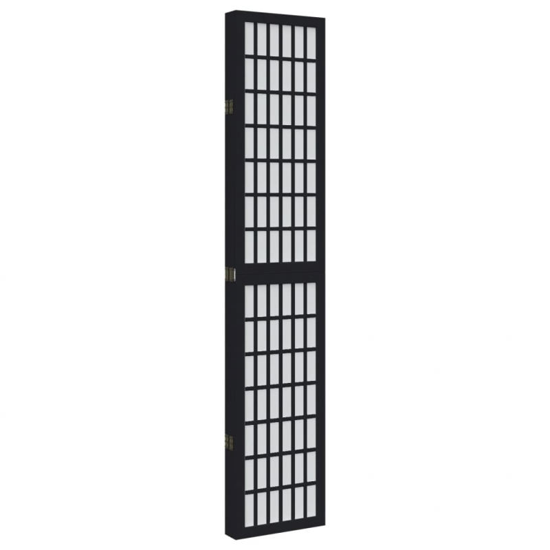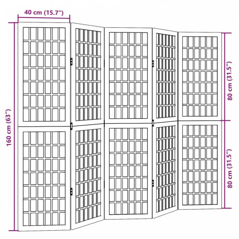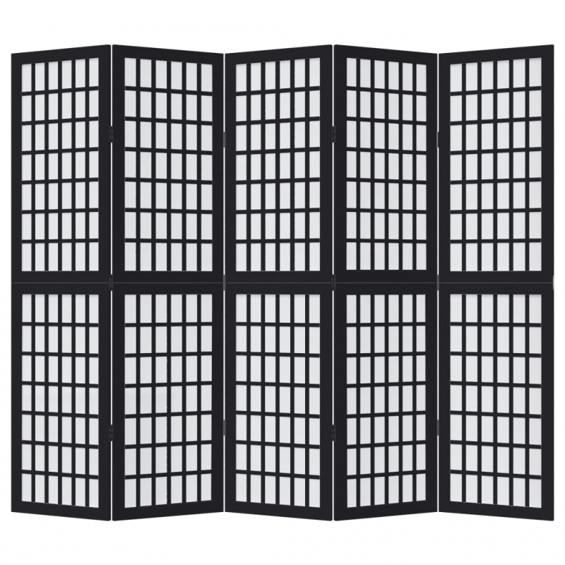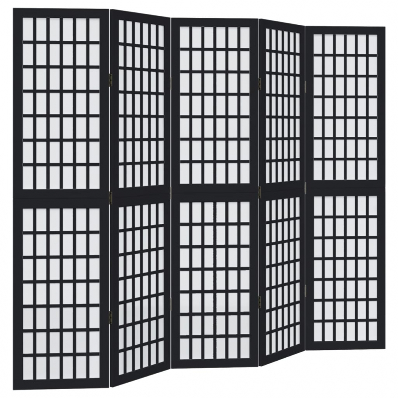 5-tlg. Paravent Schwarz Massivholz Paulownia