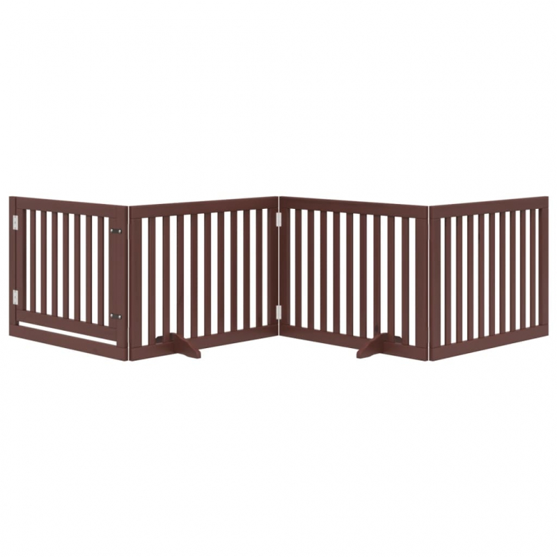4-tlg. Hundetor mit Tür Faltbar Braun 320 cm Pappelholz