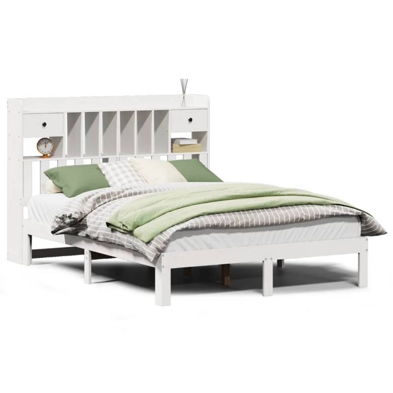 In diesem Bett mit Bücherregal schläft man besser und erholsamer! Das Massivholzbett ist eine willkommene Ergänzung für jedes Schlafzimmer. Stabiles und langlebiges Gestell: Massives Kiefernholz ist für seine Stärke und Haltbarkeit bekannt. Seine gerade Maserung und die charakteristischen Aststellen tragen zu seinem rustikalen Charme bei. Lattenrost für optimale Unterstützung: Der Bettrahmen ist mit einem Lattenrost ausgestattet, der deine Matratze stützt und atmungsaktiv hält. Viel Stauraum: Dieses Regal-Kopfteil bietet reichlich Stauraum, um Bücher, Dekoartikel und andere Gegenstände griffbereit aufzubewahren und auf diese Weise für Ordnung im Schlafzimmer zu sorgen. Platzsparend: Dieses Kopfteil bietet eine platzsparende Alternative zu üblichen Nachttischen. Es schafft zusätzlichen Stauraum im Schlafzimmer und ist eine ideale Wahl für kleine oder begrenzte Räume. Gut zu wissen:Bei diesem Bett ist keine Matratze im Lieferumfang enthalten. Wir bieten jedoch eine große Auswahl an Matratzen an. Du kannst in unserem Shop nach einer passenden Matratze suchen.