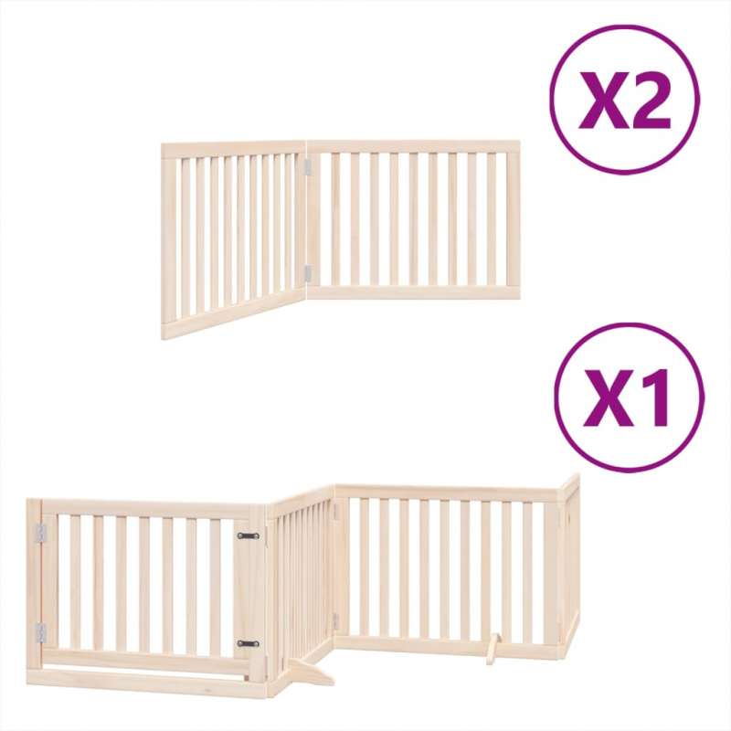 8-tlg. Hundetor mit Tür Faltbar 640 cm Pappelholz