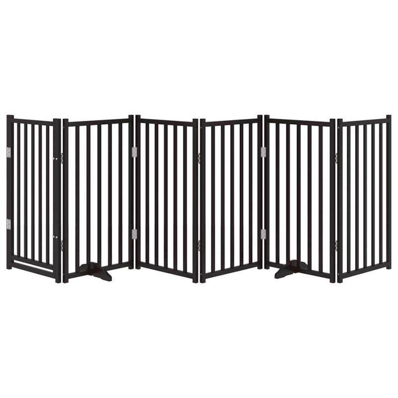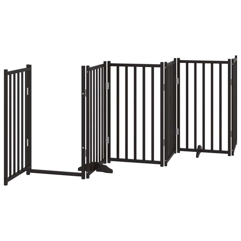 6-tlg. Hundetor mit Tür Faltbar Schwarz 300 cm Massivholz Tanne